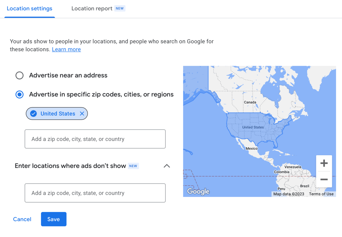 To test this, we’re doing the extra step of finding the funds’ HQ location and including that zip code in our targeting location for the campaign.
