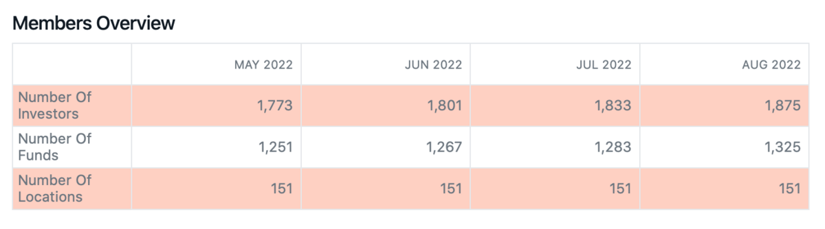 1,875 members 👥 from 1,325 unique funds 💸 across 151 different cities 🌎