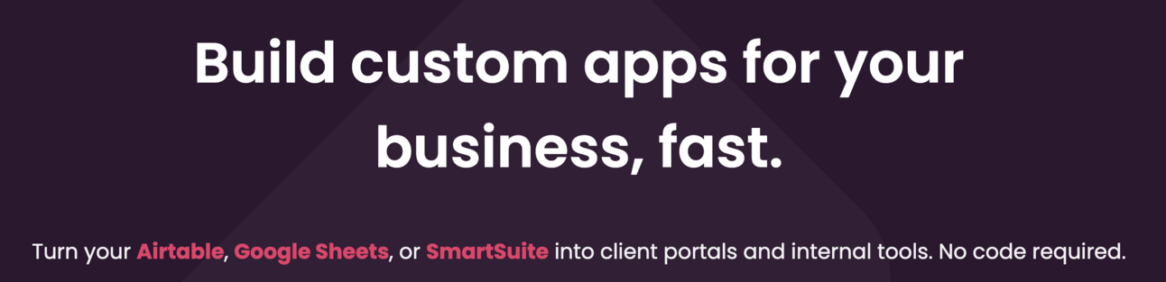 The easiest no-code platform to build customer portals and internal tools powered by Airtable or Google Sheets.