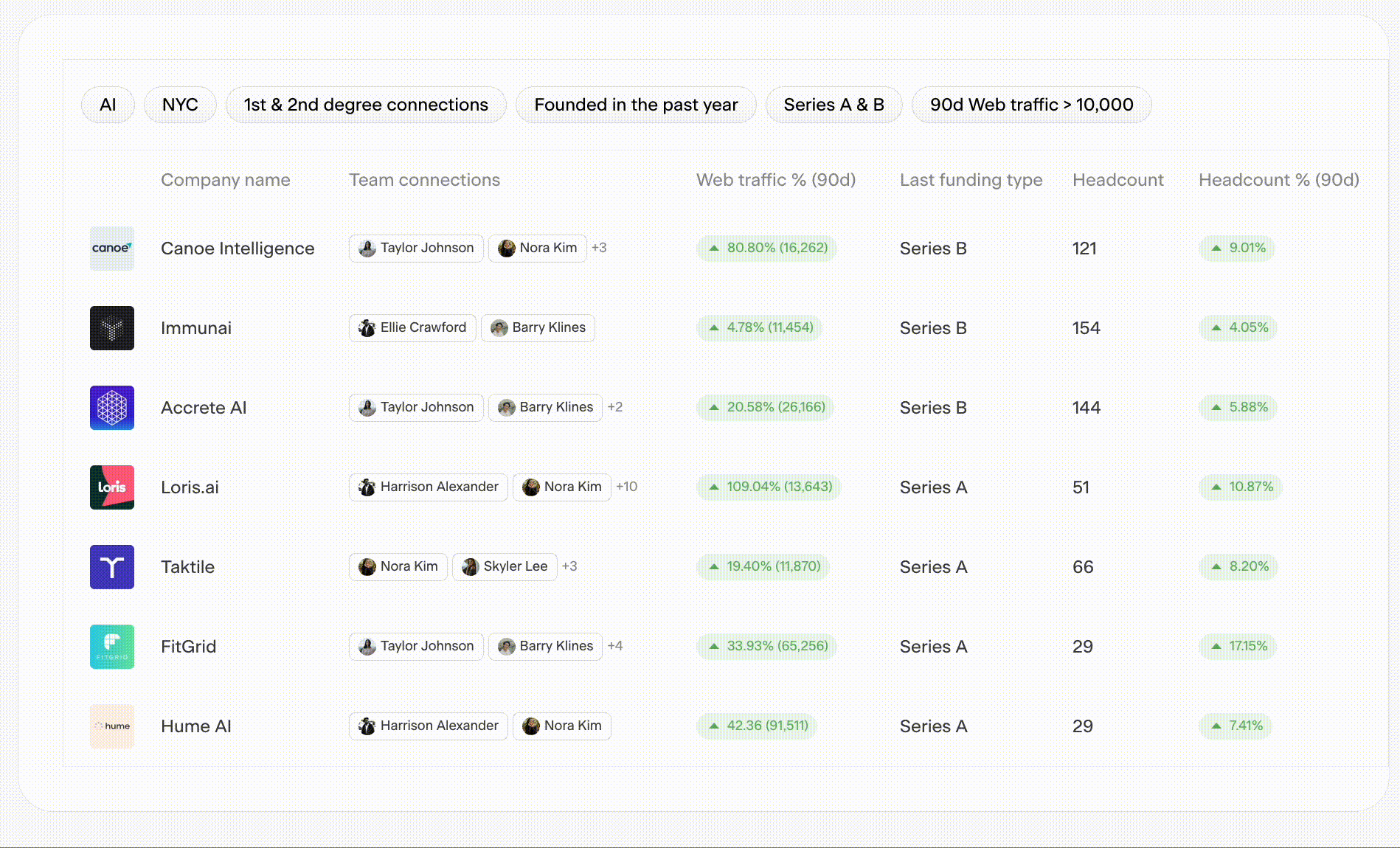 Their software scrapes millions of company and people data points, and it helps you find signal through all of the noise.