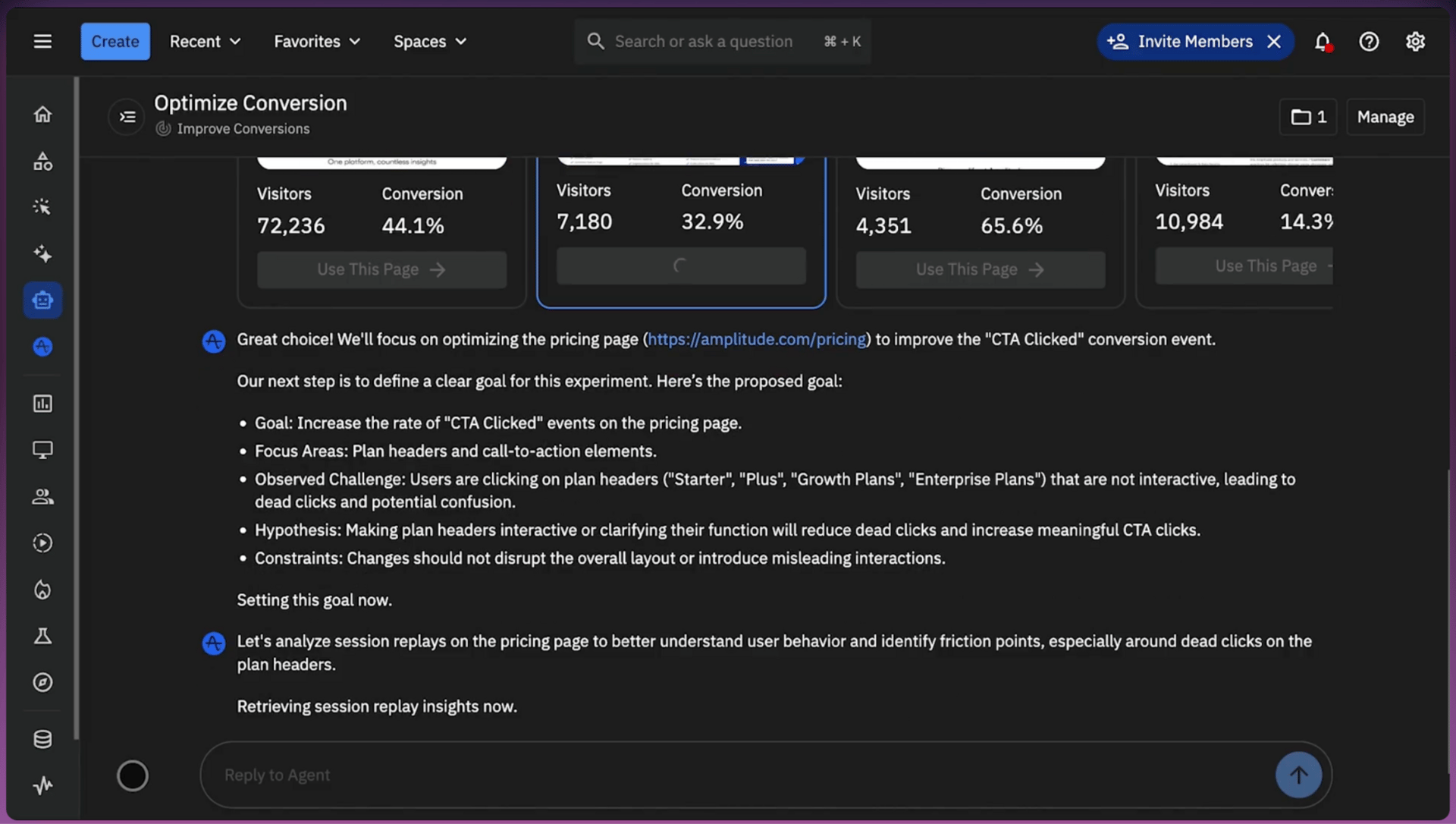 Give your agent context. This is the part people skip. Tell it what good means for your company. “We care about users who complete 3 projects,” “We care about orgs that add 5 seats in 14 days,” etc. The more you talk to it, the more it reflects your strategy instead of generic “improve conversion” noise.